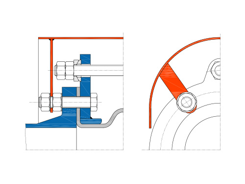 Protective covers and protective films protect the expansion joint from external influences such as sun, heat, soil or acidic splashes. Protective covers therefore extend the service life of the expansion joint and contribute to the safety of the pipework. Adapter discs, on the other hand, compensate for differences between the sealing surface of the mating flange and bellows.