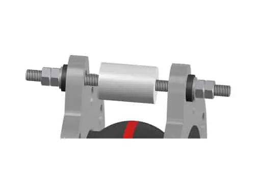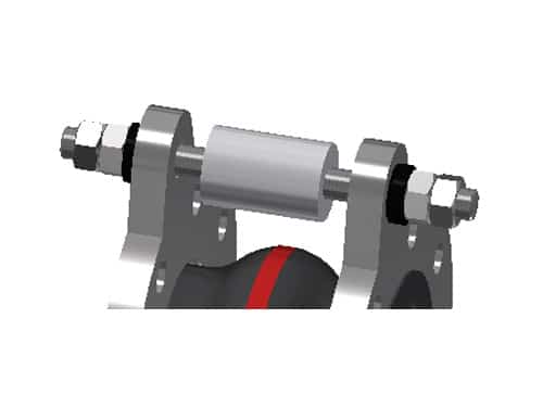 Tensioned / shear-limited, mounted externally in spherical discs / conical sockets internally with shear limitation (plastic bushing)