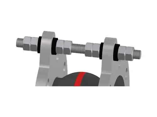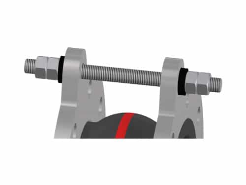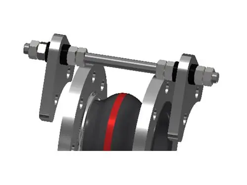 tie rods the movement and thus protects the expansion joint from damage caused by overstretching or excessive compression or absorbs the reaction forces from the expansion joint, protecting neighbouring components from additional forces.
