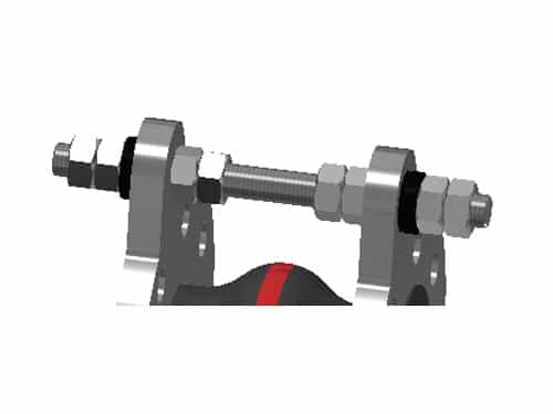 Tensioned/shear-limited, mounted externally in ball discs/conical sockets internally with shear limitation (nuts)