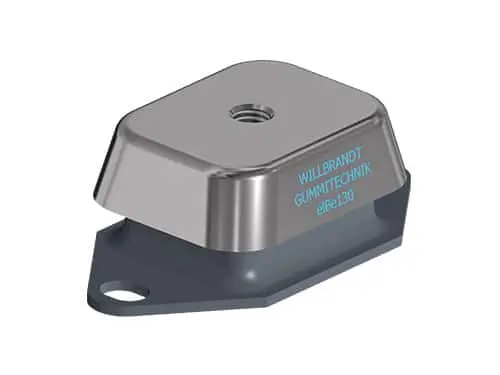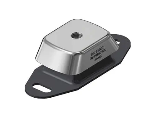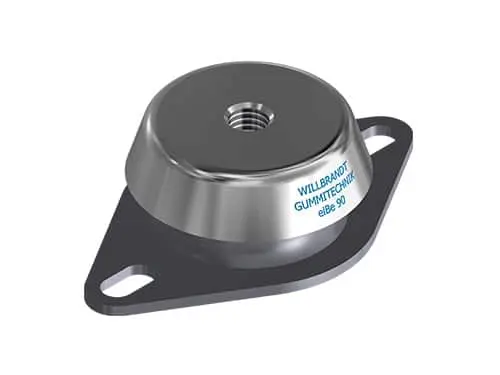 Our marine engine mounts provide outstanding isolation, especially for mounting generators, drive units, and equipment operating at around 25 Hz (1,500 RPM). Axial shocks are effectively absorbed, and lateral movements are controlled to ensure maximum stability. With integrated tear-off protection, the mounts are highly reliable. Depending on the version, they support loads of 11 to 880 kg per mounting point.